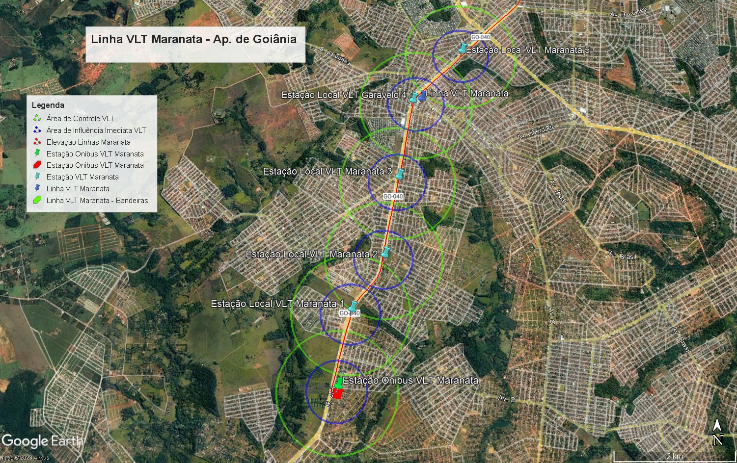 A linha VLT entre a Estação Principal VLT Maranata, e a EP Metrô/VLT Bandeiras, para a integração dos modais Metrô e VLT, terá aproximadamente 13.000 metros de extensão. A quantidade de Estações de Embarque/Desembarque do VLT será de aproximadamente 10 Estações em todo o trajeto. A expectativa é transportar 100.000 passageiros/dia na Estação Principal Maranata, com área total de 26.500m², e 200.000 passageiros/dia em toda a Rota VLT Maranata / EP Metrô/VLT Bandeiras. A Estação Principal VLT Maranata estará localizada no atual Terminal de Ônibus Maranata, Jardim Maranata Aparecida de Goiânia, na divisa com a Cidade de Goiânia. A Estação Principal VLT Maranata atenderá aos moradores das redondezas da Estação, dos bairros Jardim Dom Bosco, Jardim Alto Paraiso, Conj. Hab. Madre Germana II, Vila Isaura, Av. 4ª Avenida, Av. Nossa Sra. Aparecida, moradores da Cidade de Aragoiânia na RMG, pessoas que chegarem pela GO-040 e linhas de ônibus alimentadores do Sistema VLT.